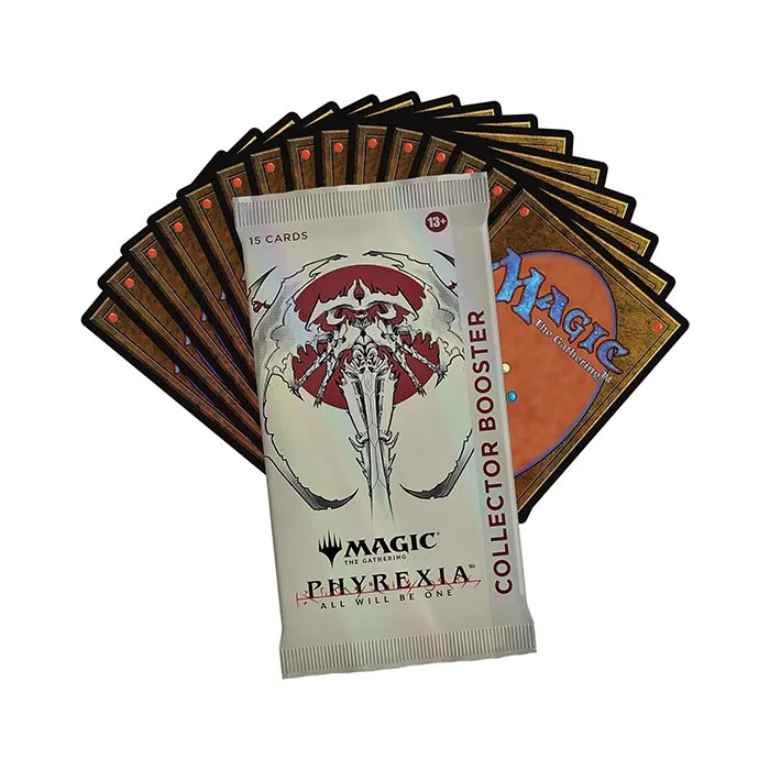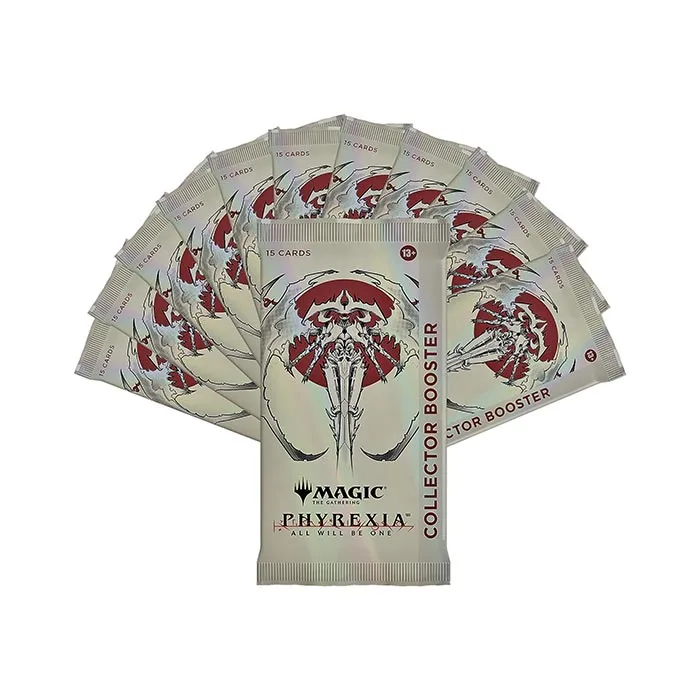 Expand your collection with the pinnacle of Phyrexian power. Each Phyrexia: All Will Be One Collector Booster Box features 12 boosters filled with borderless and showcase cards, stunning foils, and special treatment cards celebrating Phyrexia’s might. Each booster includes 15 Magic: The Gathering cards and a Traditional Foil double-sided token, with a mix of rarities ensuring excitement in every pack.