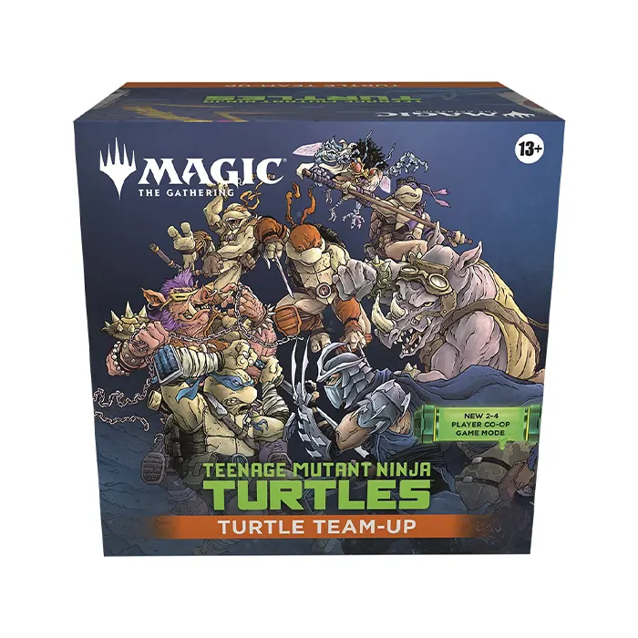 When the evil Shredder attacks, Turtles fight back! In this exciting new co-operative strategy format for Magic: The Gathering, two-to-four players battle for survival against an onslaught of villainous adversaries. Play with your favorite of the four pre-built 60-card hero decks, then crack into the included Play Boosters to expand your strategies. Team up against the common foe, so the only losers are Shredder and his gang! Plus, it’s the perfect training dojo for Magic players of any skill level and any age to come together and play!