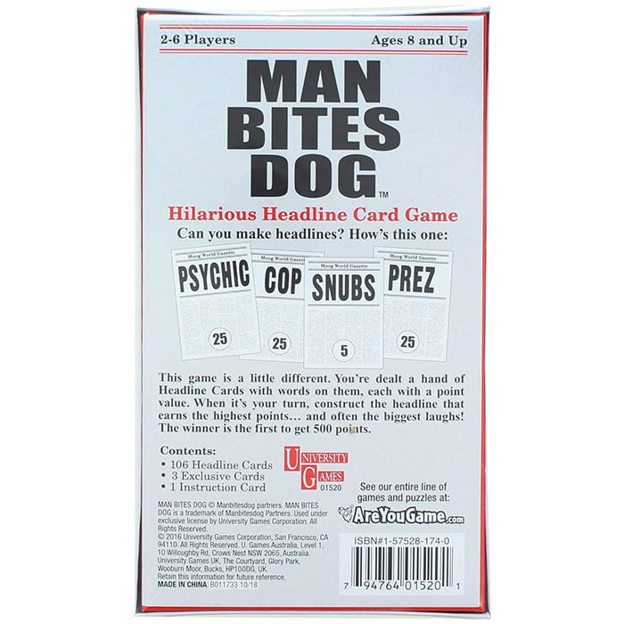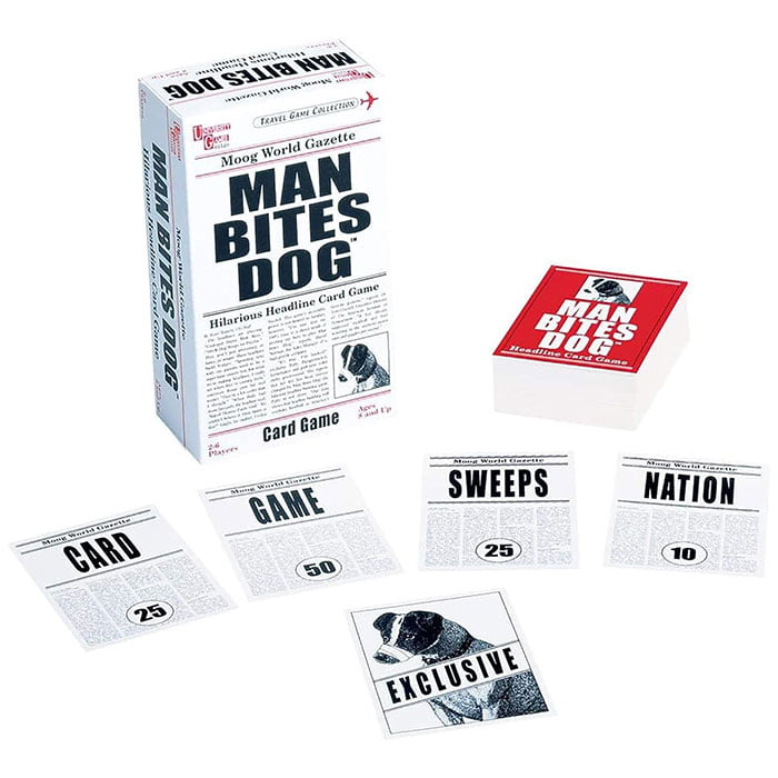 This game is a little different. You’re dealt a hand of Headline Cards with words on them, each with a point value. When it’s your turn, construct the headline that earns the highest points… and often the biggest laughs! The winner is the first player to get 500 points. For 2 or more players ages 8 and up.