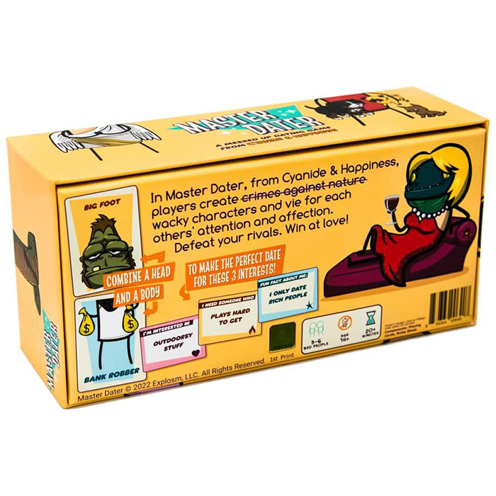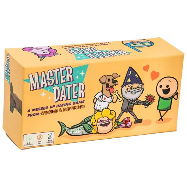 In Master Dater, the newest card game from Cyanide & Happiness, players vye for each others attention and affection by creating perfect, horrible dates pandering to very specific dating interests. Combine a head and a body into a perfecet match, and argue your way into the heart of the beautiful single. Defeat your rivals, win at love!