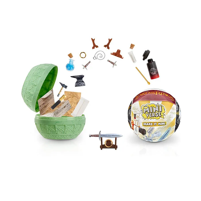 The Lord of the Rings has arrived to MGA’s Miniverse. All new DIY Make It Mini The Lord of the Rings themed minis to make, set, display, and collect. Each ball comes with realistic mini items and accessories to mold your own mini replicas of your favorite items from The Lord of the Rings film series! From the Elven Dagger to Narsil, to Sting Each package is a SURPRISE, so you won’t know which mini replica you have until you unbox it.