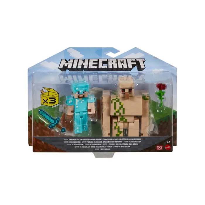 Create, explore and survive with two Minecraft figures in 3.25-inch scale together in one set! Each action figure has been authentically created using the video game’s signature pixelated design, and the sets have been specially paired by Minecraft designers making collecting fun. Movable joints allow iconic characters to strike action poses. Makes a great gift for Minecraft fans who will want them all! Each sold separately, subject to availability, Colors and decorations may vary.