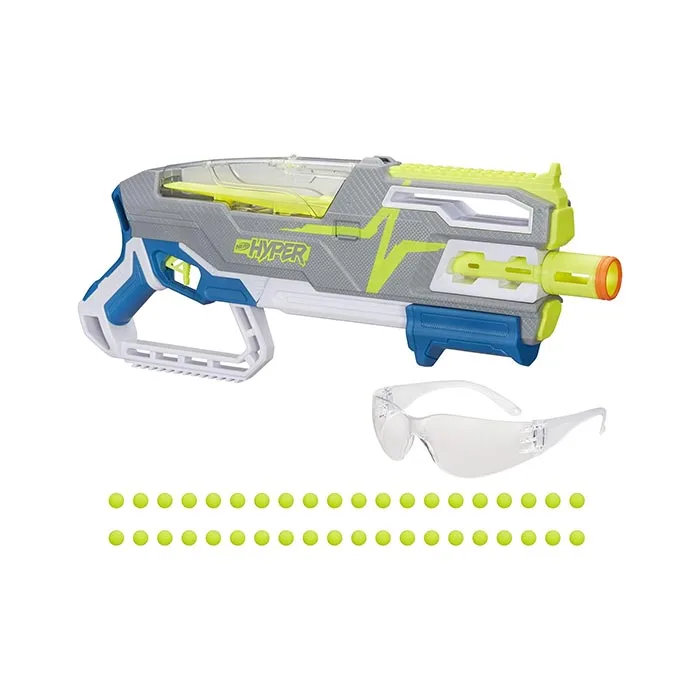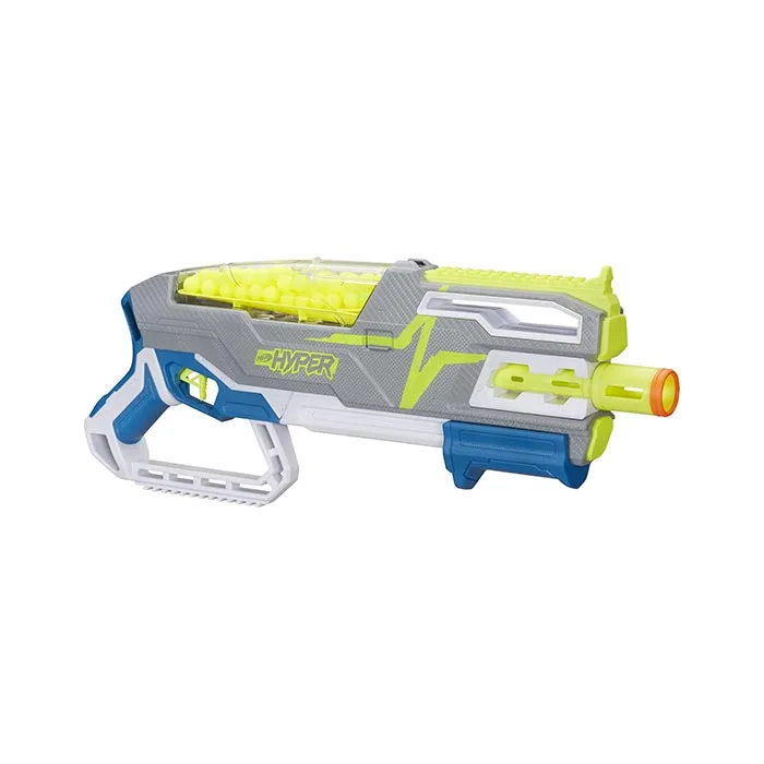Outblast and outlast with the revolutionary Nerf Hyper system! Nerf Hyper blasters feature extreme speed and keep you blasting with massive round capacity! Engineered for velocity, they fire rounds at up to 110 feet per second. They include large hoppers, so you spend more time playing and less time reloading.