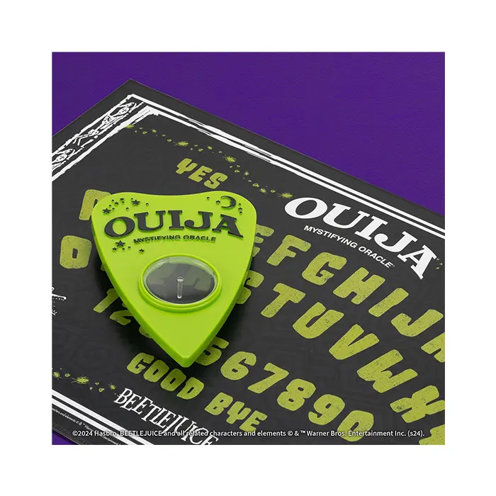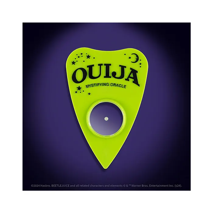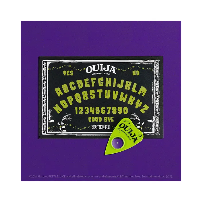 Unleash the Netherworld’s secrets with Ouija: Beetlejuice. Summon the spirits by saying “Beetlejuice” three times and get answers to all of your burning questions! With a gothic Beetlejuice-themed design, this vintage-inspired Ouija board offers a thrilling experience, illuminating the unknown with haunting symbols and mysterious spirits.