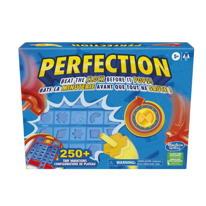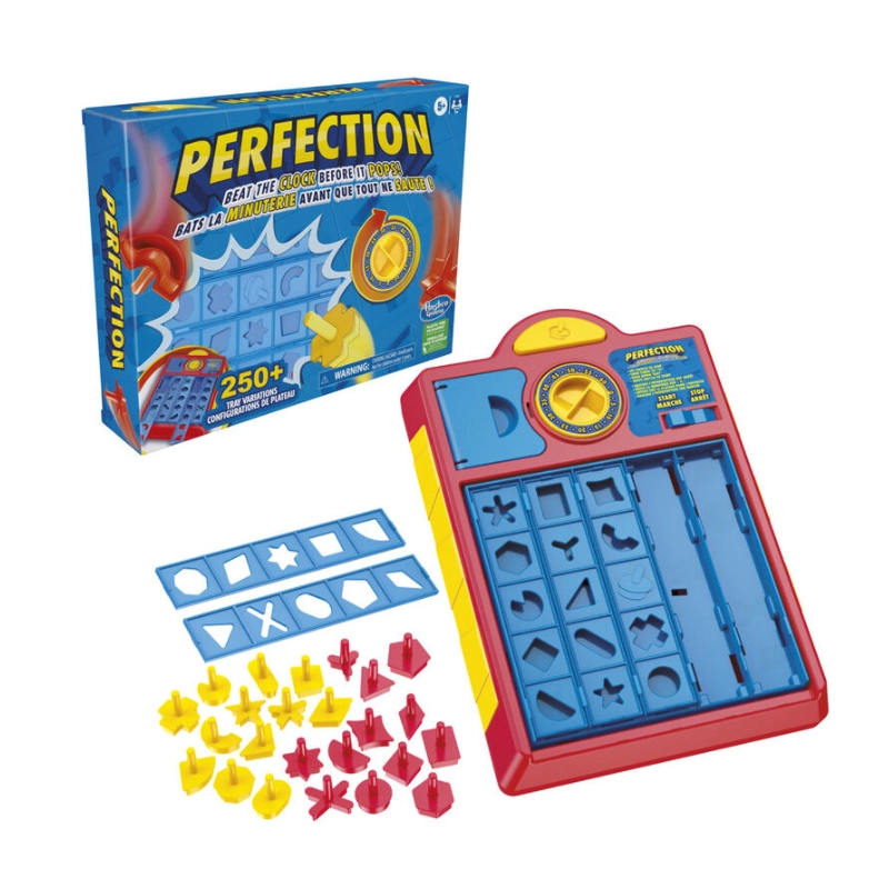 Race against time with PERFECTION REFRESH, the updated version of the classic Perfection game. Your goal? Quickly fit all of the uniquely shaped pieces into their matching slots within the tray — but hurry, because when the timer ends, those pieces will pop out!