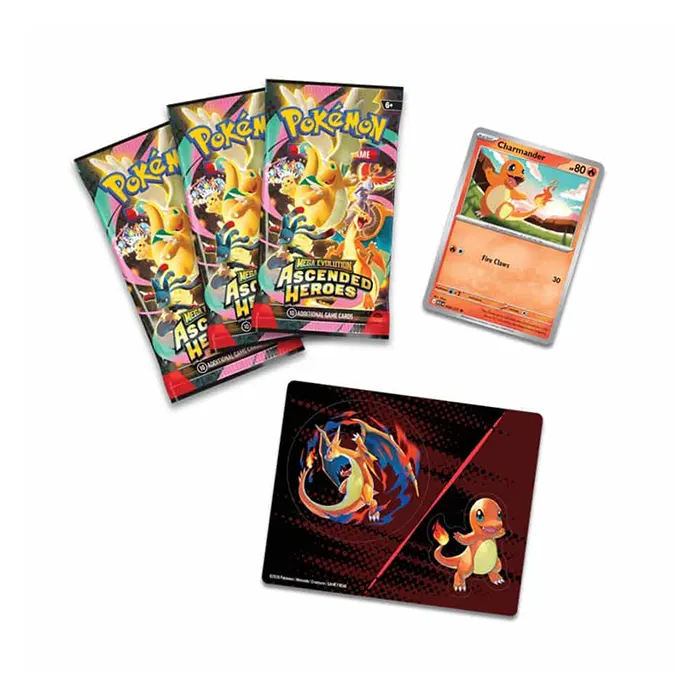 Pokémon from the Kanto region are ascending to greatness—as both promo cards and tech stickers! In this collection, you’ll find either Charmander or Gastly as a foil promo card, plus a sheet of tech stickers featuring Charmander and Mega Charizard Y or Gastly and Mega Gengar. Top it all off with even more Pokémon inside three booster packs from the special Mega Evolution—Ascended Heroes expansion!