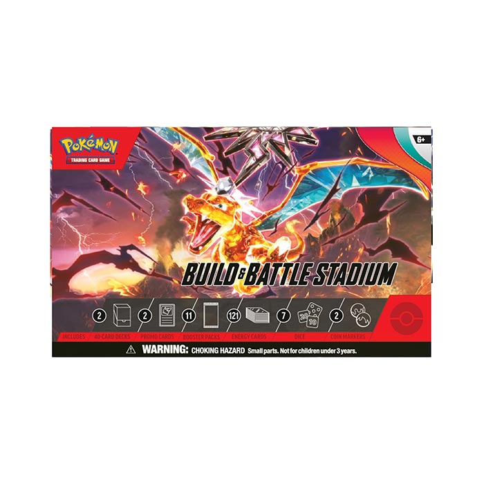 Immerse yourself in the dynamic world of Pokemon TCG with the Scarlet and Violet 3 Obsidian Flames Build and Battle Stadium. Unleash the formidable power of Obsidian Flames cards as you engage in strategic battles. This all-in-one stadium provides an immersive gaming experience, allowing you to refine your deck-building skills and develop winning strategies. Elevate your Pokemon TCG journey with the latest installment in the Scarlet and Violet series, combining excitement and tactical gameplay.