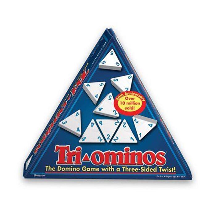 Tri-Ominos comes with 56 plastic playing pieces, a durable tin case, and instructions.