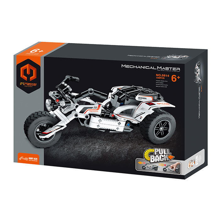 - Build your own custom motorbike with 198 pieces, complete with realistic details and a pull-back feature for high-speed racing action