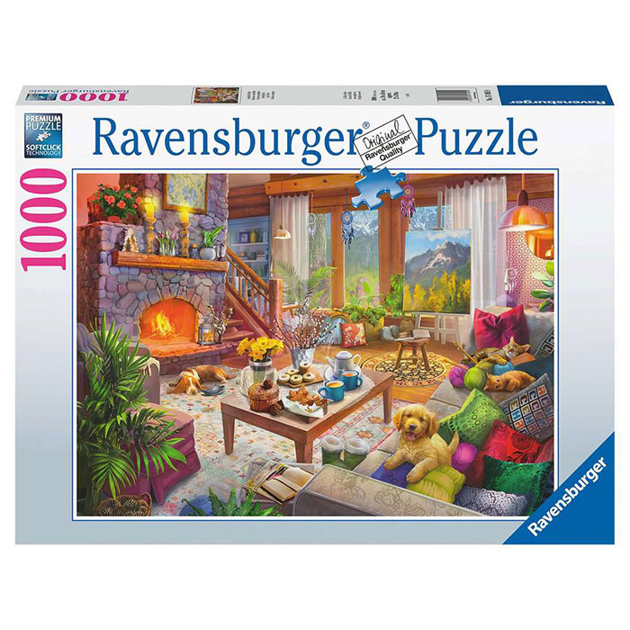 - Get away from the troubles of the day and slip into Ravensburger’s Cozy Cabin puzzle for hours of stress-reducing, brain-boosting puzzle fun!
