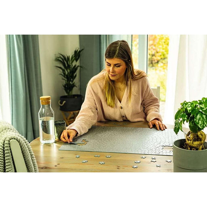 Krypt Silveris a 631 piece premium puzzle by Ravensburger. It is a challenging puzzle with every piece being the same colour but a different shape. This piece comes out to 70cm x 50cm in size. Perfect to do with family, friends, or even as your own project.