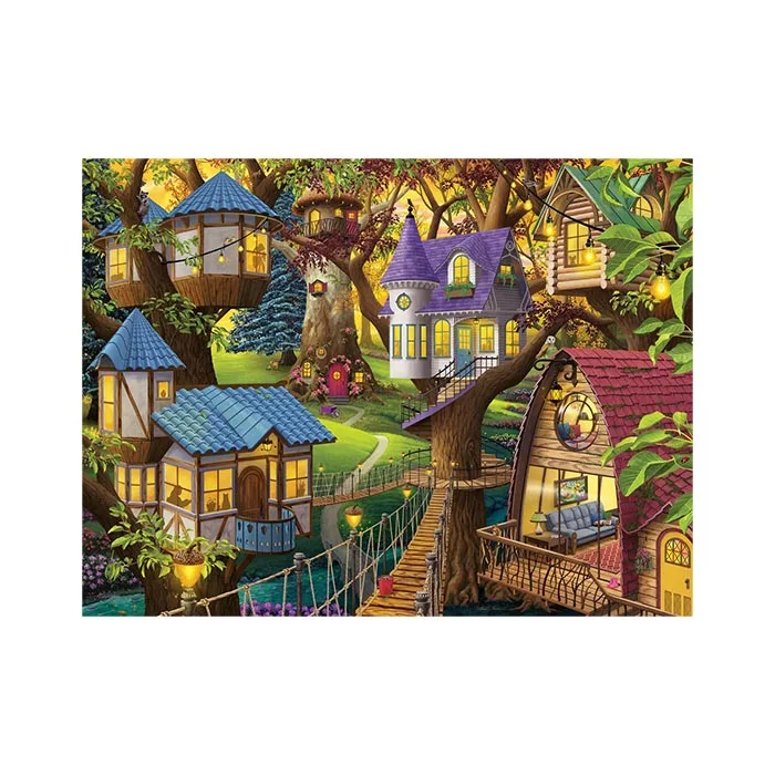 Escape to a charming village of tree houses with the “Twilight in the Treetops” jigsaw puzzle! Illustrated by Nathanael Mortensen, this whimsical scene features intricate details like acorn lampposts, friendly animals, and even a barn owl. Let your imagination soar as you piece together this delightful puzzle, perfect for unwinding at the end of a busy day.