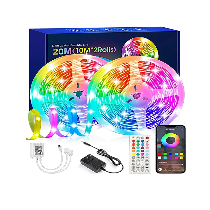 Illuminate your space with this versatile 10-meter RGB LED light strip. Perfect for creating colorful atmospheres, it offers customizable lighting with a range of colors and effects. It is ideal for decorating rooms, parties, or special events.