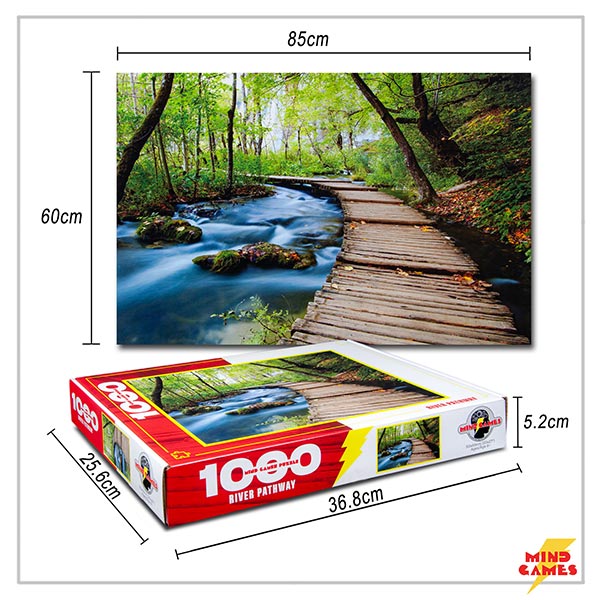 River Pathway is a 1000 pieces jigsaw puzzle from Mind Games. This challenging puzzle is made of high quality cardboard and snaps together easily with a precise fit.