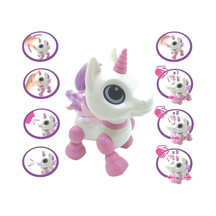 This adorable interactive unicorn is designed for hours of imaginative, hands-on play. Simple and intuitive to use, kids can control the unicorn’s movement just by adjusting its head-no complicated buttons required!