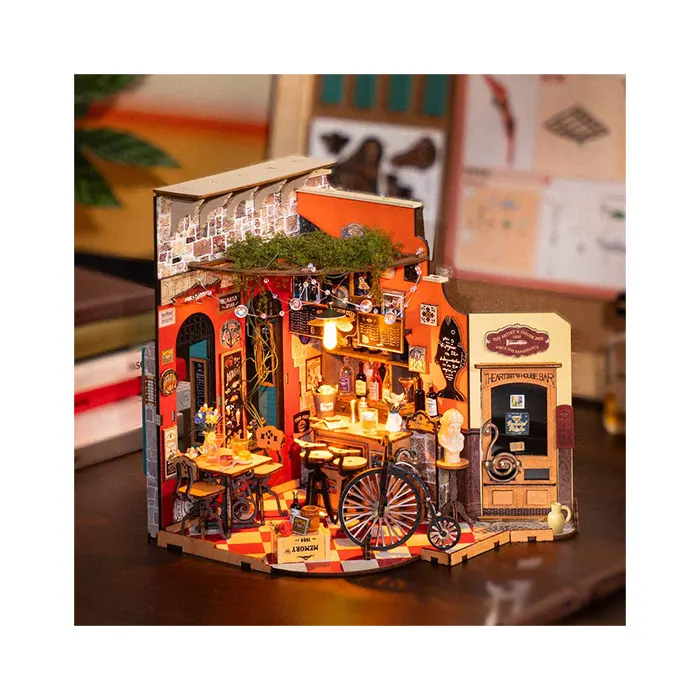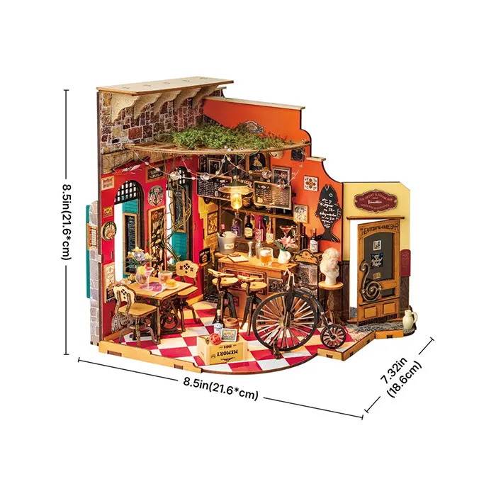 Relax, socialize, and have fun at the Cheers Bar & Dining by Rolife. This stylish DIY miniature house will give you a shot of nostalgia with its upscale feel, sleek furniture, and classic European bistro design.