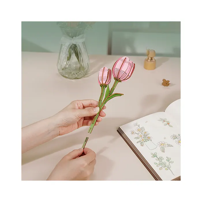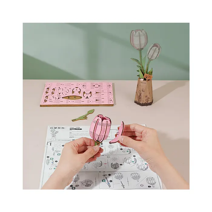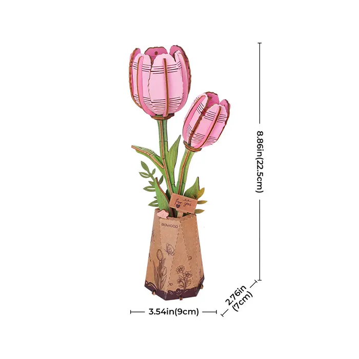 Robotime Pink Tulip DIY Flower 3D Wooden Puzzle