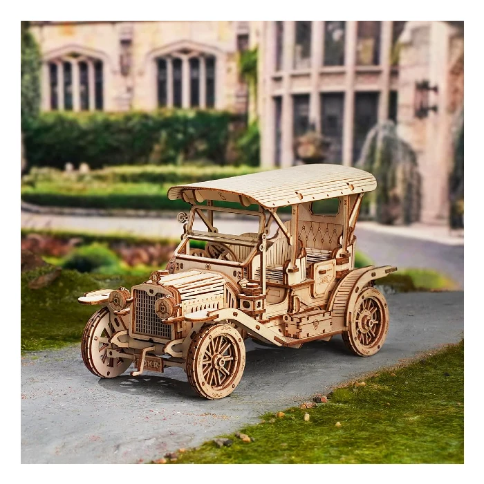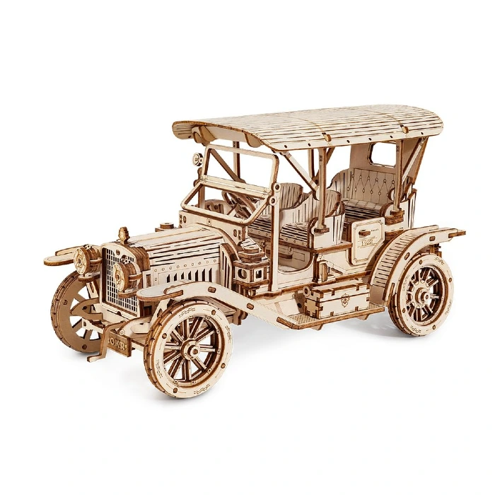 Vintage cars in the Brass Era are milestones in automotive history. They are masterpieces of craftsmanship and technology, representing the unique charm of that era. Rokr Vintage Car 3D wooden puzzle is a 1:15 scale replica that will take you back to the 1910s, a revolutionary time for the automobile industry. With a “runabout” body style that’s reminiscent of horse-drawn buggies, it boasts a streamlined fender with lines that run continuously from front to rear and fender aprons that partially conceal the wheels.