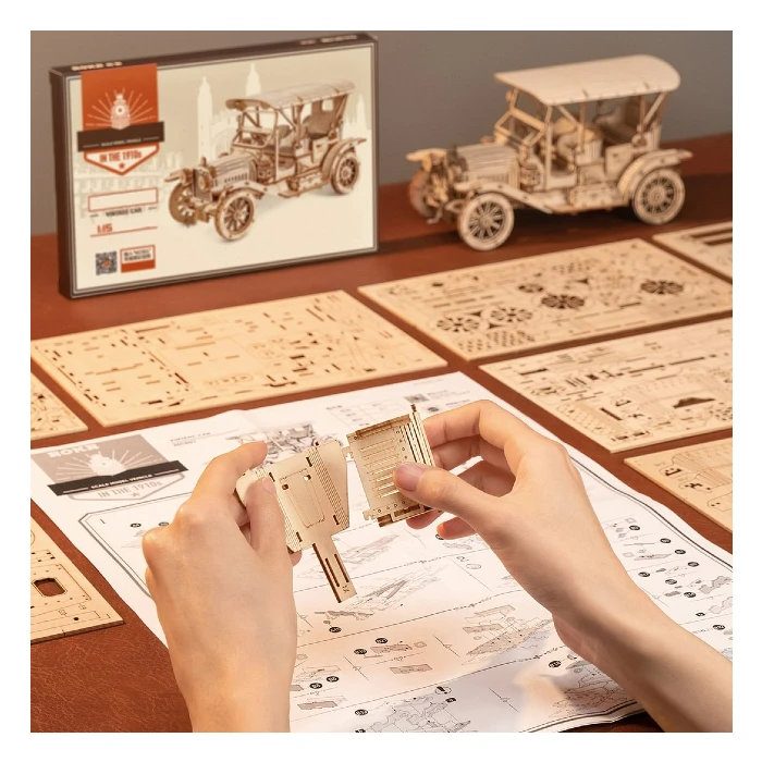 Now, assemble this dashing retro car 3D wooden puzzle, make it your perfect decoration, and experience the charm of that unique era with more vintage vehicle lovers.