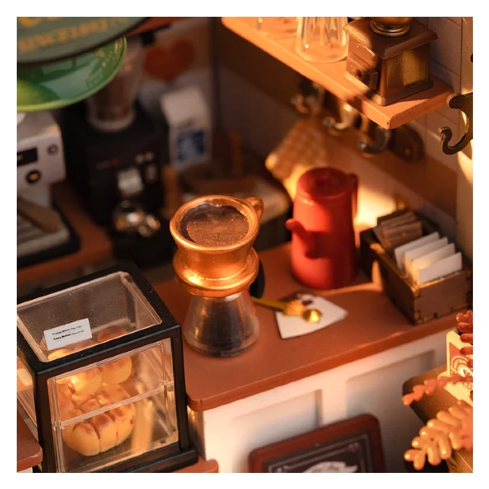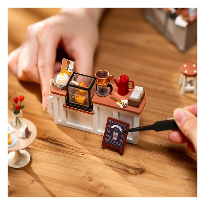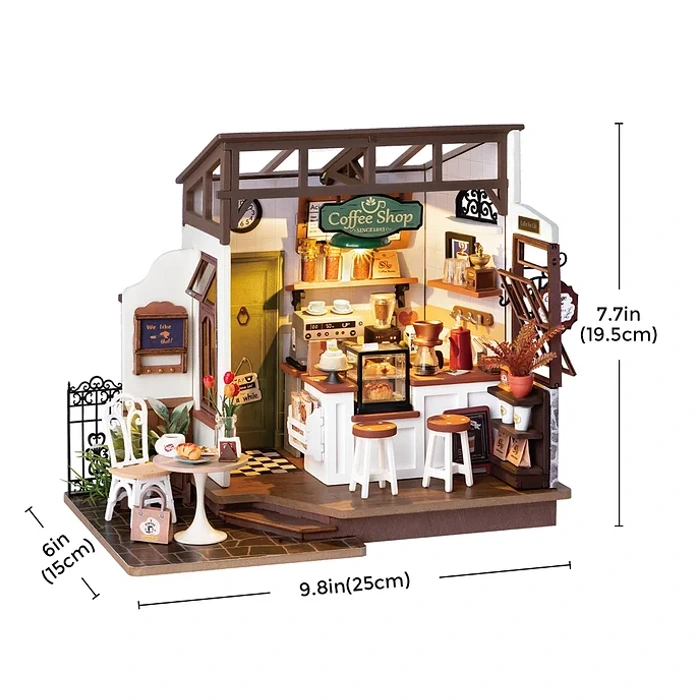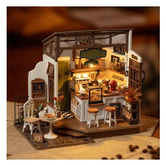 Step into the enchanting world of the Café Miniature House and surrender to the allure of exquisite nostalgia. It has the ambiance of a premium cafe that transports you to a realm of relaxation, indulgence, and retro charm. Drawing inspiration from the timeless beauty of classic coffee shops, this miniature masterpiece weaves a symphony of wooden elements that breathe life into its inviting atmosphere.