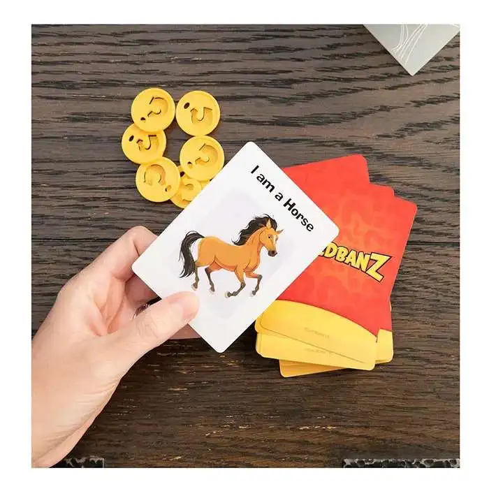 The classic game of “What am I?” is now back with all-new cards, headbands, and art. It’s as easy as Pick, Place, Play. Pick your favorite headband (6 new themes to choose from!) and take a picture card without looking at the face of the card.