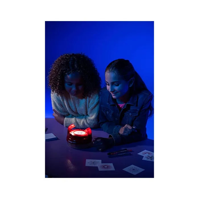 Every design moves in a different way with each of the rotating light effects. The design and animation possibilities are endless with the animator, 6 wheels, 5 pens, 100 sheet paper pad, and guide.
