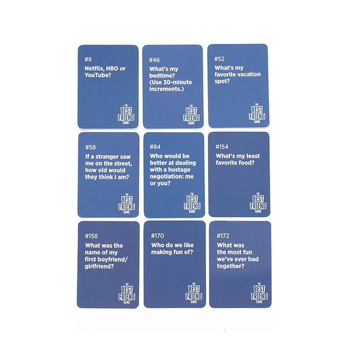 Think you know your friends? The Best Friend Game is like the Newlywed Game – but for friends. Do you know your best friend’s Starbucks order? What their favorite swear word is? Who their celebrity crush is?
