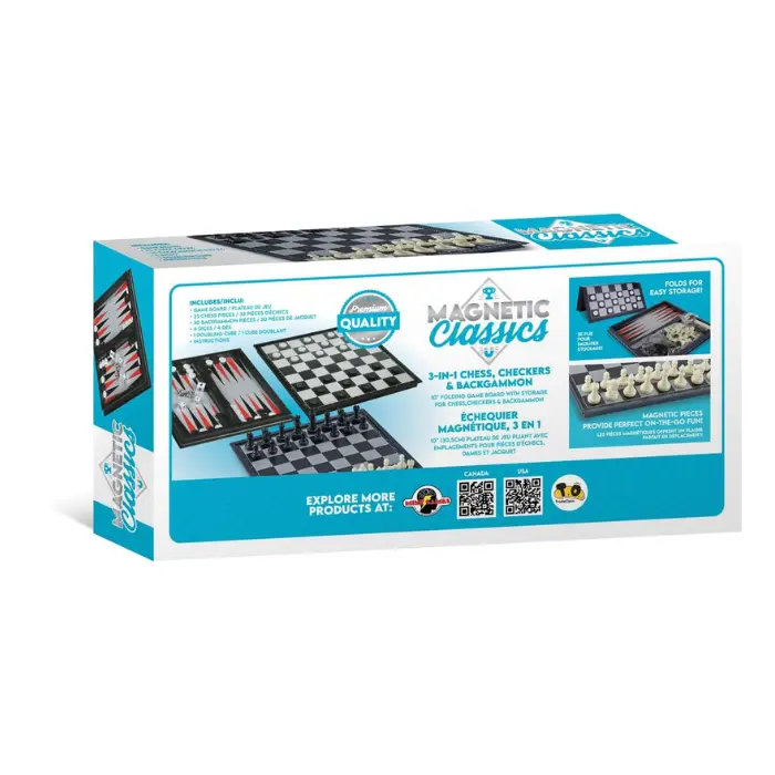 Unleash hours of fun with our 3-in-1 chess set. This 10-inch magnetic board features chess, checkers, and backgammon, making it perfect for players of all ages. With secure magnetic pieces that stay in place, it’s ideal for travel or home play. Crafted from durable plastic, this versatile set promotes strategic thinking and social interaction. A fantastic gift for board game enthusiasts, it’s the perfect addition to any game collection.