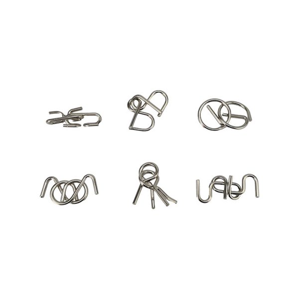 Twisted Wire Puzzle Set of 6 comes with two puzzles in each difficulty of easy, medium, and hard.
