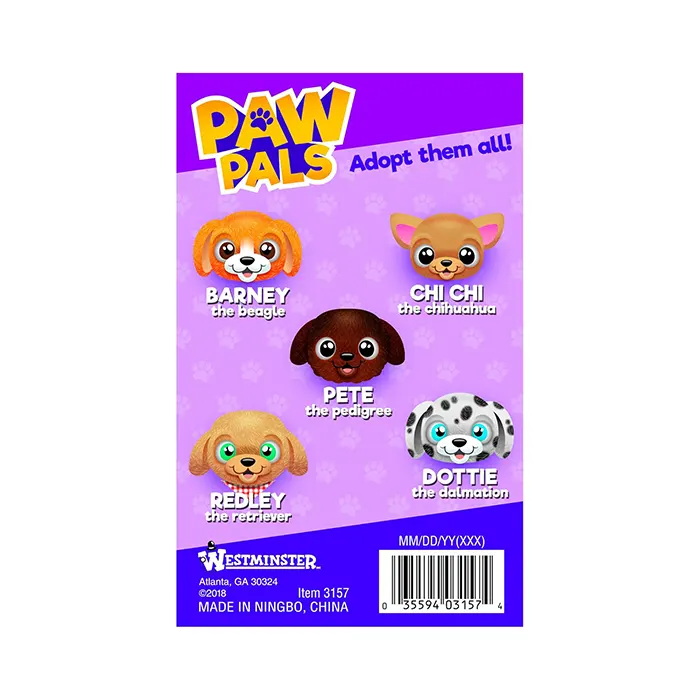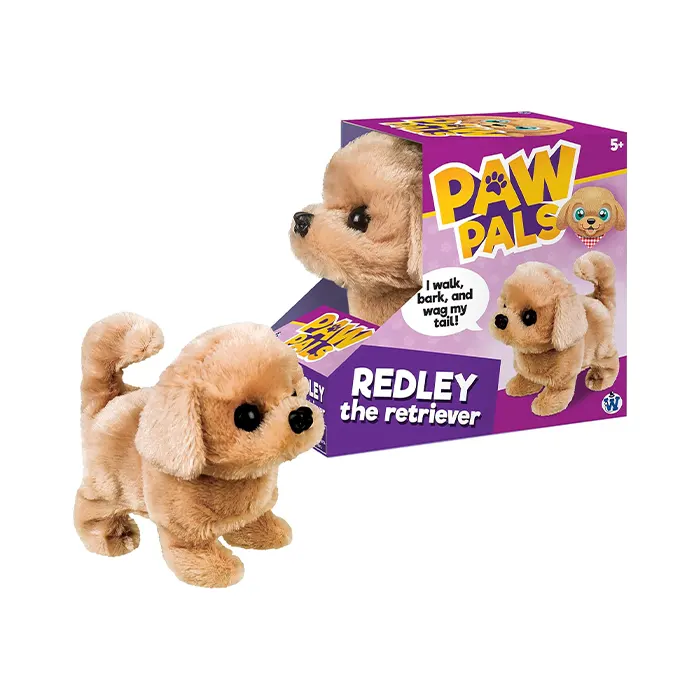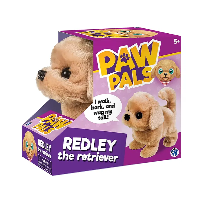 Redley the Retriever walks, barks, and wags its tail. Redley is just one member of the Paw Pals family. Adopt all 8! Cute and cuddly battery-operated toy requires 2 AA batteries (not included).
