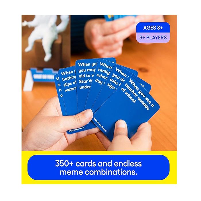 WHAT’S INSIDE: Each What Do You Meme Family Edition game contains 300 caption cards and 64 photo cards.