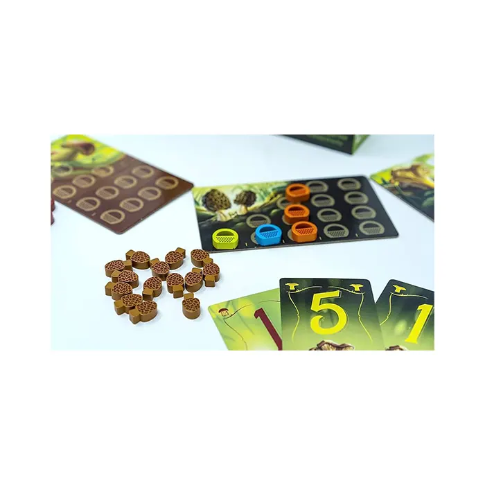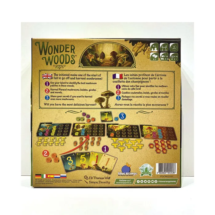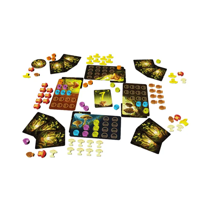 It’s mushroom hunting season in the utopian wonder woods! Will you uncover the most sought-after varieties? In this beautiful strategy game, use your intuition and deduction skills to identify the mushrooms you think will be worth the most at the end of the game. Harvest porcini, morels, chanterelles, and parasol mushrooms using your limited number of baskets. And if you wish, each turn, share one of your secrets and receive an extra basket to pick more mushrooms. When each mushroom value is finally revealed, count what your entire harvest is worth and win the game with the highest score!