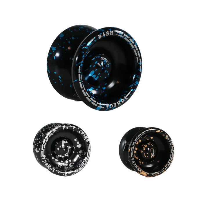 The Yomega Dash Yoyo is a long spinning yo-yo made from high grade anodized aluminum. It weighs 66 grams, which is 6 grams heavier than the similar Yomega Maverick yoyo. The increased weight lets the Dash hold spinning momentum for advanced string tricks, and the slightly wider wing shaped gap lets you catch it back on the string a little bit easier. This version of the Dash from Yomega features a silicone response system. This yoyo is unresponsive and has a response system, which means it will NOT wake up with the tug of your hand. The Dash uses 6061 aluminum, an advanced type that is also widely used in aircraft on the wings and fuselage, which gives you an idea of the durability.