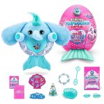 These Mermaidcorns are ready to make a splash in Rainboville! Hatch open your egg to unbox your new fin-tastic friend and over 35 surprises! These cuddly plush come with a shiny mermaid tail and a boo-boocorn hidden inside a their water globe horn! There are 6 Mermaidcorns to collect, each one with a peel and reveal heart to tell you what your Mermaidcorn loves! Explore Mermaid Cove and find your new cuddly bestie!
